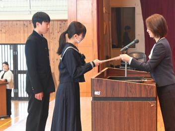 水曜日の中学校朝会では、学級委員・学級書記が任命されました。新しいクラスの役員を引き受けるのは勇気がいることだと思いますが、返事の声や姿勢、表情に強い決意が感じられました。校長先生からは「リーダーの姿はひとつではなくさまざま。自分らしさを生かして挑戦してほしい。」と励ましていただきました。