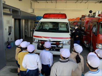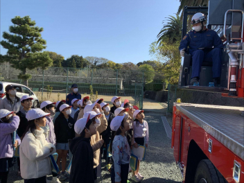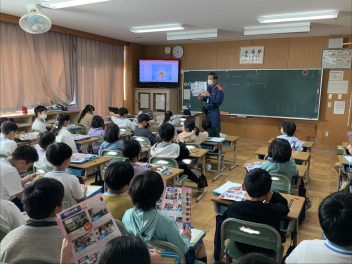 • 11月26日(水)、3年生が社会科「くらしを守る~火事からくらしを守る~」の学習の一環として、「スクール119」を実施しました。今回は、地域の安全を支える西消防署庄内出張所の消防士さんを講師にお招きし、講話と見学の2部構成で学びを深めました。