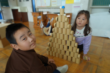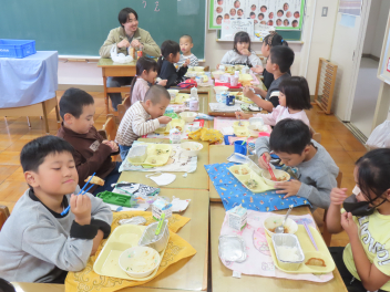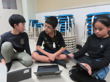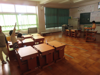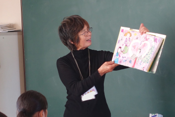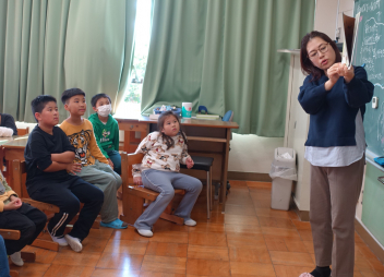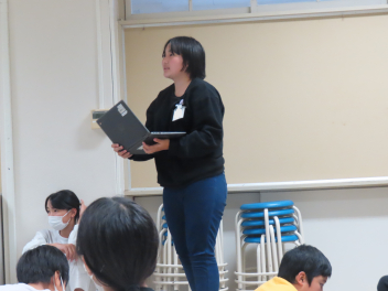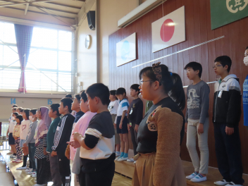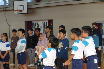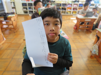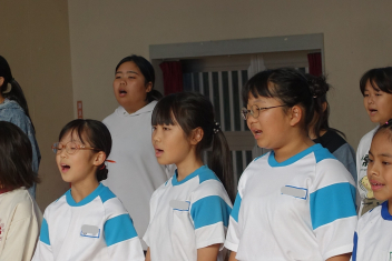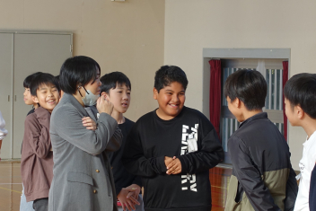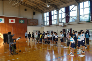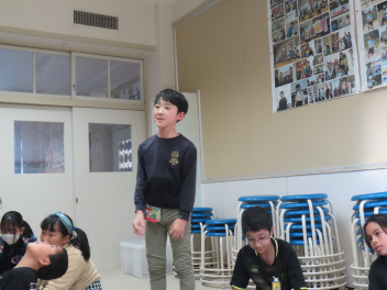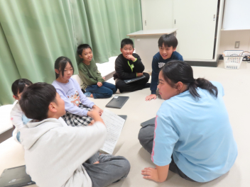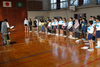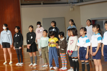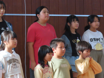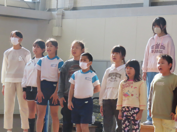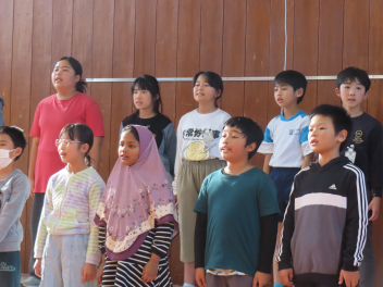 先週に引き続き、声楽家の中島実紀さんをお招きして合唱教室を行いました。歌は「にじ」です。今日は、実紀先生から無声音について教えていただきました。実紀先生は、「し」や「つ」の発音を一人ずつ聞いて、たくさんほめてくださいました。日本語以外の言語を母国語としている子たちは、無声音の発音がとても上手で、みんなのお手本となっていました。日本語は、無声音が分かりにくく、他の言語の方が無声音がたくさんありますね。教えていただいた通りに無声音に気を付けて歌うと、「にじ」のかわいらしい歌詞がはっきりと聞こえてきました。また、実紀先生が途中に歌ってくださるお手本の歌声に、高学年の子たちはうっとりとしていました。あんな素敵な声が出せたらいいね。