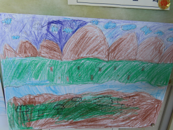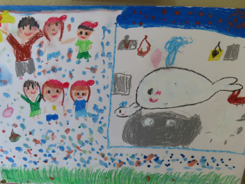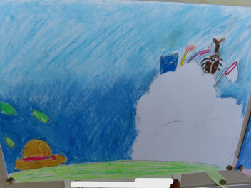1年生図画工作科の「お話の絵」です。物語を読んでかきました。子供らしい豊かな想像力ですね。