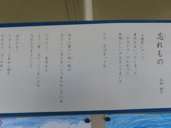 掲示コーナーには、子供たちの学習の様子が分かる作品が飾ってあります。子供たちの作品を見ると元気になります。