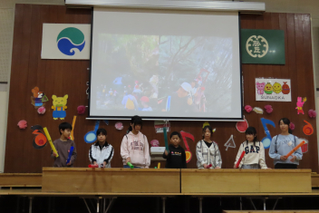 子供たちは体育館のステージ上で、これまで学習してきた成果を堂々とした態度で発表していました。