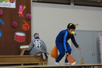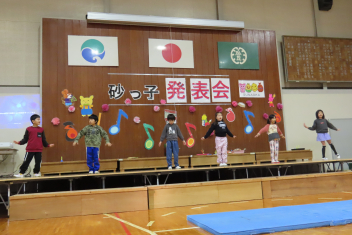 授業中に廊下を歩いていると「先生、見に来て。」と砂っ子発表会の練習に誘われました。