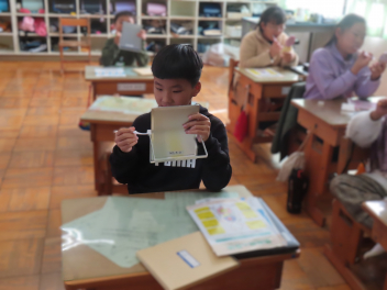 • 2年生は国語科の「紙コップ花火の作り方」を学習していました。説明文「紙コップ花火の作り方」を読み取り、どうやって紙コップ花火を作れるのか、実際に作って考えていました。また、自分でも紙コップのおもちゃを作り、そのおもちゃの作り方を説明したり、文章にしたりしていました。世の中には、さまざまなものの使い方の説明書があふれています。説明文を読み取る力は、社会で生きていくために必要な力ですね。
