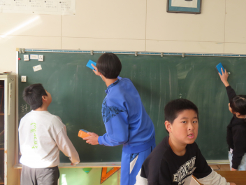 1人目のお兄さんは、砂丘小の卒業生で、中学校の職場体験学習で2日間小学校に来てくれました。