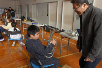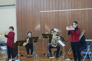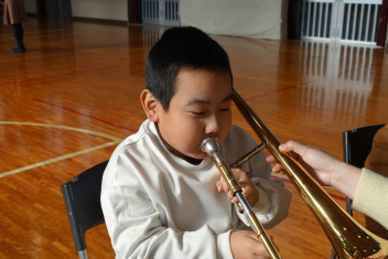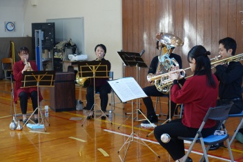 浜松市文化振興課が企画する「ランチタイムコンサート」は、浜松市の様々な学校に来てくれて、昼休みにミニコンサートと管楽器の演奏体験を開催してくれるというものです。今日は、砂丘小学校です!プロの管楽器奏者の楽しい演奏を聴いたり、管楽器を実際に吹いてみたりと楽しくて贅沢な時間を過ごすことができました。素敵な音楽に、子供たちの顔もニコニコになりました。初めて楽器に触れた子も多く、いい音が出てとてもうれしそうでした。聴きにきてくださった地域の方も、「やっぱり音楽っていいですね。」とおっしゃっていました。企画運営のみなさん、演奏家のみなさん、楽器店のみなさん、素晴らしい音楽をありがとうございました。