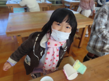 • 今日の生活科は、「こまづくり」です。厚紙を円に切って、模様をかいて、こまをつくります。中心につまようじを刺して「回るこま」、糸を通して「ぶんぶんごま」の完成です。「回るこま」も「ぶんぶんごま」も回すのが難しい。「先生はどうしてうまくまわせるんだろう。。。」と不思議そうです。「ぶんぶんごま」は、先生が回すとブンブン音もします。先生みたいに回せるように、たくさん遊べ遊べ!