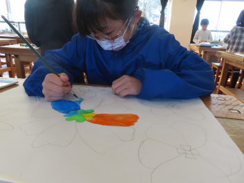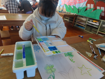 3・4年生の図工では、3年生は「空き容器のへんしん」、4年生は「まぼろしの花」を制作していました。