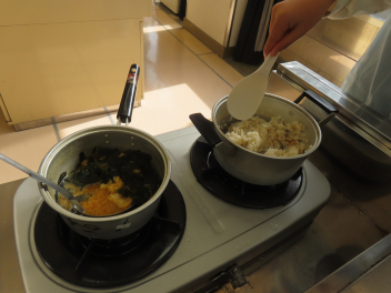 • 朝から5年生は、今日の調理実習を楽しみにしていました。今日の調理実習は、ごはんとみそ汁です。