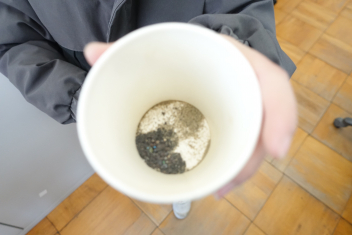 • 3年生が職員室にやってきて「砂場に磁石を入れたら、こんなものがとれました」と砂鉄を見せてくれました。砂の中には、磁石にくっつくものが混ざっているんですね。不思議だねー