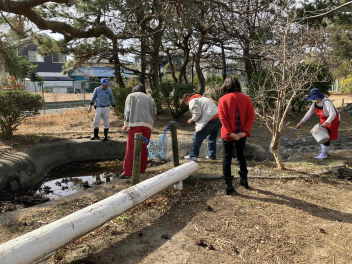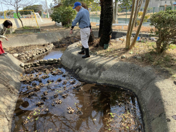 •  子供たちが大好きな「ひょうたん池」を、用務員さんがきれいにしてくれていました。