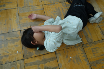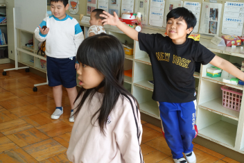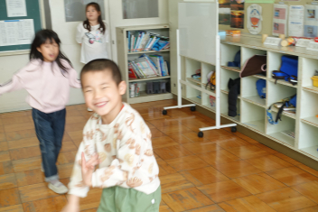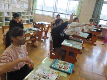 • ピアノのいい音色が聞こえてくるなあと思い1、2年生の教室へ行ってみると、音楽の学習で「人形の夢と目覚め(エステン作曲)」を鑑賞していました。さすが低学年の子供たち、すっかり人形になりきって、この音楽を聴いていました。「最初は、眠っているよ」「ここで人形は起きて、踊りだすよ」など言いながら、みんなで楽しく体を動かして聴きました。