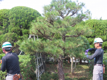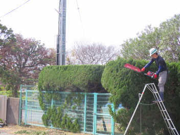背の高い樹木が植えられていますので、専門の道具で剪定を行います。