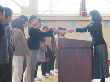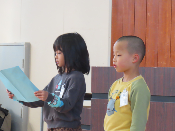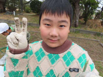 また、寒い中ひょうたん池をきれいにしてくれた用務員さんたちに、子供たちはお礼を言いました。
