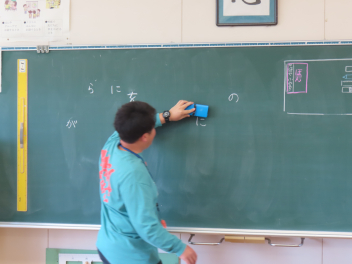 一回歌うたびに、黒板に書かれた歌詞を先生が少しずつ消していきます…。