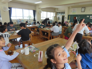 •  3時間目に図工室から、楽しそうな声が聞こえてきました。
