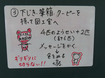 砂丘小のキャラクターに、心を込めたメッセージを書いていきます。