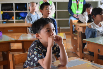 今回は、体育館に全校児童が集まり、落ち着いた雰囲気の中で行われました。