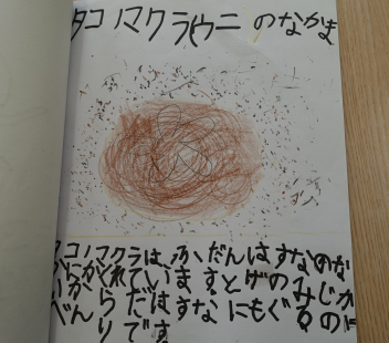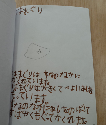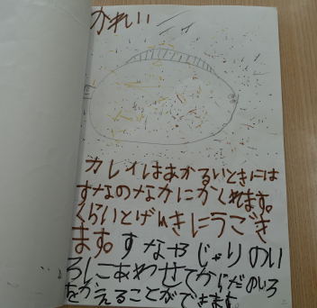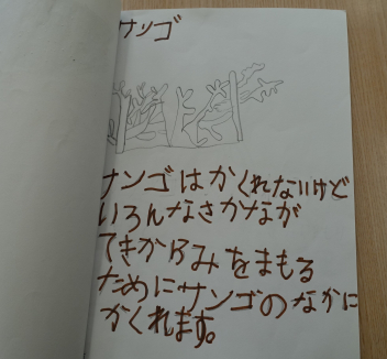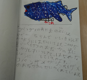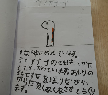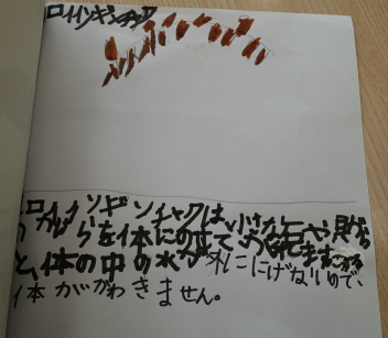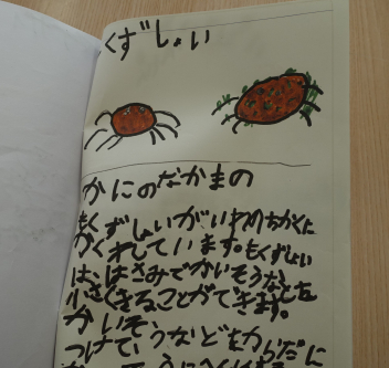 ついこの間、平仮名と片仮名を学習したばかりなのに、どの子もしっかりと書けていて驚きました。内容もとても興味深く読めました。絵も素敵です。みんな頑張りました。図書室の先生も「すごくいい図鑑ですよ。みんなに宣伝しますね。」とはりきっていらっしゃいました。