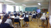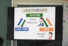 本日は、給食を食べながら「フェアトレード」について学びました。