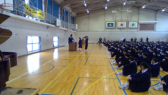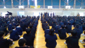 高台中学校は、今日で二学期が終わります。本日体育館で終業式を行いました。