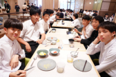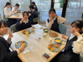 昨日は、入学・進級祝いの行事食で、和風ハンバーグ、若竹汁、お祝いクレープが出ました。
