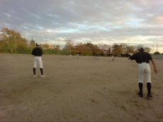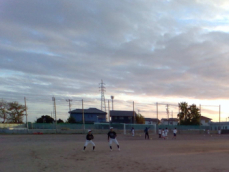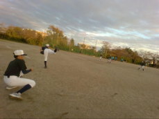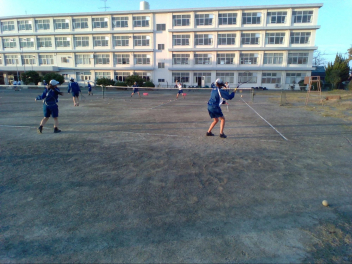 •  野球部は2人1組になり、キャッチボールをしていました。