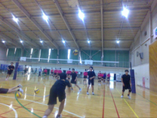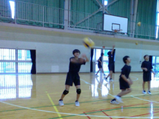 男子バレーボール部は2人1組でレシーブの練習をしていました。