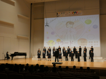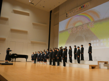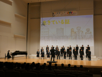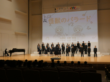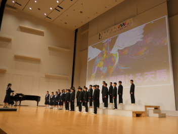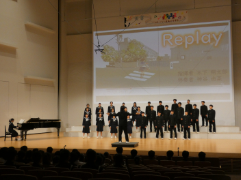 筒井先生をはじめ、1年生の先生方にアドバイスをいただいたり、先輩たちと交流合唱をしたりして作り上げたクラスの合唱を、元気いっぱいホールに響かせました。