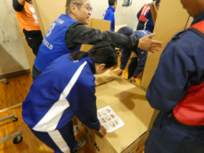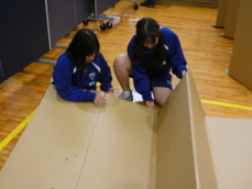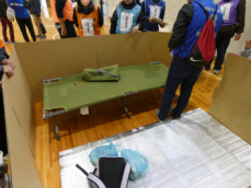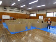 居住スペース(ダンボールベット、マット、仕切り板)の設置訓練を行いました。