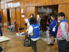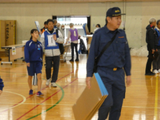 自主防災隊、行政センターに交じり、天竜中学校の生徒もボランティアとして運営補助に参加しました