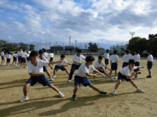 今日は、タブレットを使った小集団での動きの練習。画像を見ながらイメージをふくらめて自分の動きをブラッシュアップしていき、集団で合わせていました。リーダーが「声出していこう!」と呼びかけ、下級生をリードしている姿が印象的でした。