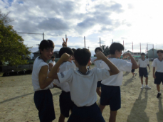 オレンジ団同様、リーダーがそれぞれタブレットを持参しての練習でした。小集団ごとに音楽を聞いて動きのテンポを学んでいることが分かりました。練習が進むにつれて、イメージがつかめて動きが良くなっていきました。
