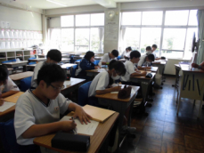 今日も小集団での動きの練習。「4時から1回合わせてみます」との団長の説明に、下級生から「よしやるぞ!」という意気込みが感じられました。体育館での練習の利点を生かして、大スクリーンに見本の映像を流しながら工夫して練習に取り組みました。