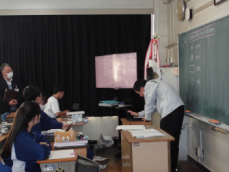 生徒の皆さんが下校した後、先生方は今日の授業について振り返り、勉強会をしました。