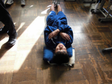 講師の先生から、眠れないときにするとよいストレッチを教えてもらい、みんなでやってみました。