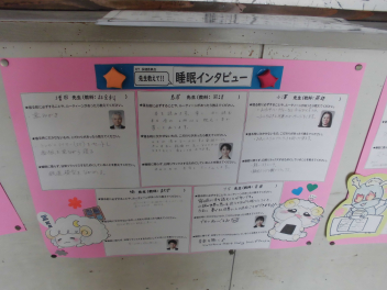 天中ニュースから始まり、アンケートの結果から天中生の睡眠に対する実態が分かりました。