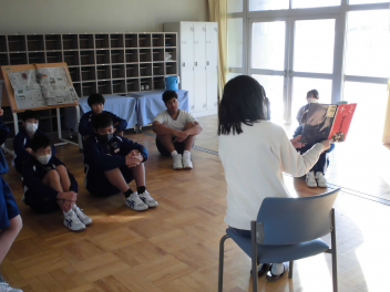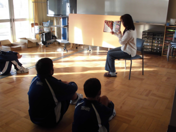 •  今日の読み聞かせは、1年生と8,9組でした。