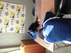 今日は、睡眠キャラクター「スリーピー」を描いてくれた生徒に保健委員長から表彰状を渡しました。