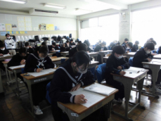 面接試験のない生徒は、登校して公立入試に向けて自習をしていました。