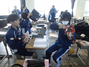 3年生の音楽の授業では、「アンサンブル」をやっています。