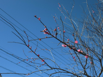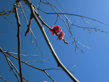 グランドの南では、梅の花が咲き始めました。