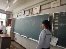 学級で発表会をして代表者を決め、選ばれた学級代表者が学年全員の前で発表しました。