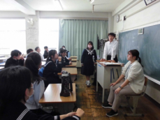 1時間目は、体育館で防災講座。避難生活に備えて備蓄すべきものや災害時の行動についてお話を聞きました。