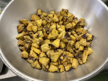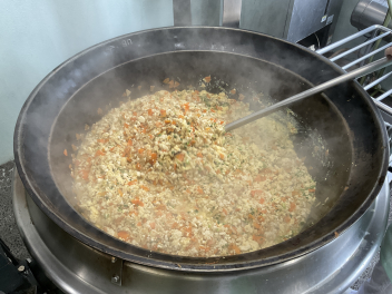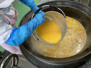 久々のカレーに大喜びの様子で、一人当たりの分量が多めでしたが、ぺろりと食べてくれました。そのおかげで、ほとんど残食がありませんでした。