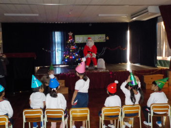 少し前の話題にはなりますが、校区の幼稚園で行われたクリスマス会に、本校の職員がサンタクロースとして参加しました(どの先生かは写真から推測してください)。念願のサンタクロースに会うことができ、感極まっていた園児もいたようです。園児たちにとって、心に残る思い出になるとよいです。