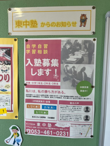 3学期の東中塾は1月21日(水)、2月9日(月)、3月11日(水)を予定しています。次の学年の0学期と言われる3学期に、学習を進めてみませんか。