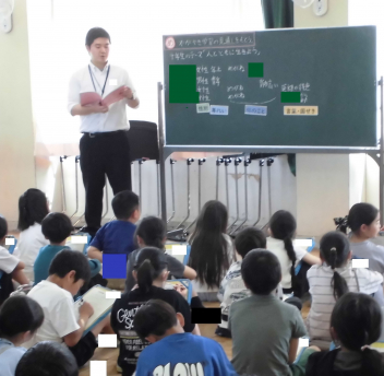 •  国語科「図書館たんていだん」の学習で、本を探すための工夫と、図書の10の分類を学習しました。授業の後半には、図書館に行き、読んでみたい本を借りました。いつも目にしていた、「数字のかんばん」の意味が分かり、うれしそうでした。