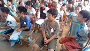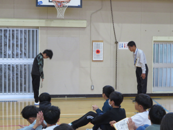 修学旅行前日の22日(水)5時間目に体育館で出発式を行いました。