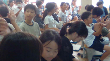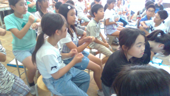 今までそれぞれのクラスで練習していましたが、初めて学年全員で